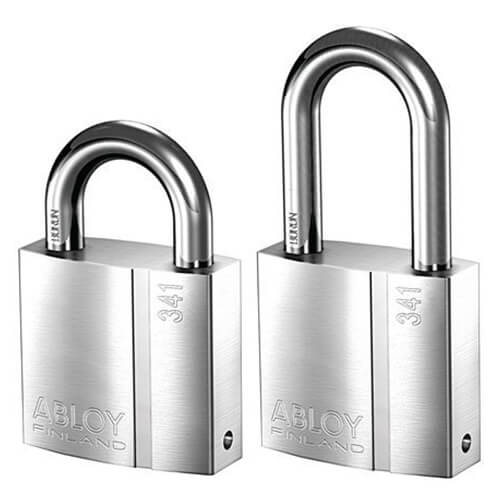 The Abloy PL341 comes with either a 25mm shackle or a 50mm shackle. The shackle is a 10mm boron case hardened steel open shackle.